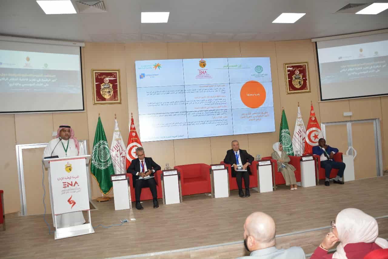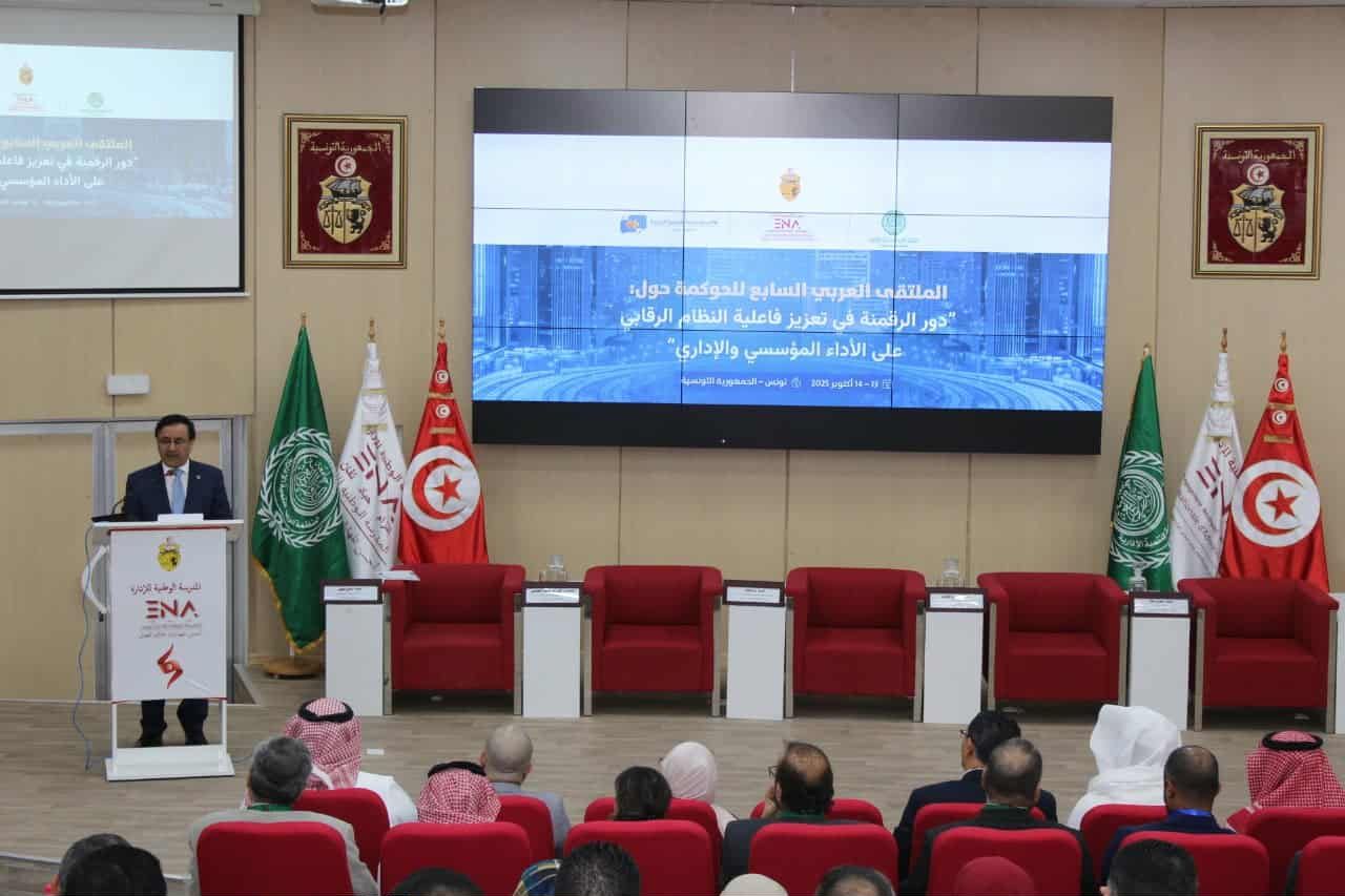 انطلقت يوم الاثنين 13 أكتوبر 2025 بمقر المدرسة الوطنية للإدارة أشغال الملتقى العربي السابع حول” ” دور الرقمنة في تعزيز فعالية النظام الرقابي على الأداء المؤسسي والإداري ” والذي يتم تنظيمه بالتعاون مع المنظمة العربية للتنمية الإدارية التابعة لجامعة الدول العربية وبالتنسيق مع مصالح رئاسة الحكومة ووزارة الشؤون الخارجية والهجرة والتونسيين بالخارج.