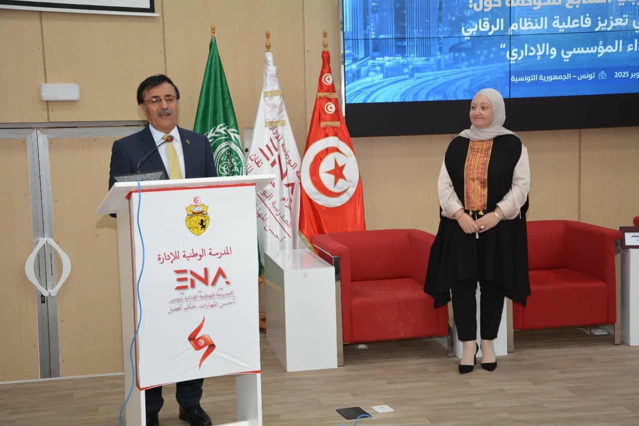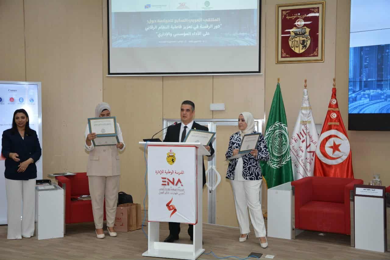 تم يوم الثلاثاء 14 أكتوبر 2025 بمقر المدرسة الوطنية للإدارة تنظيم حفل اختتام فعاليات الملتقى العربي السابع للمنظمة العربية للتنمية الإدارية التابعة لجامعة الدول العربية وبالشراكة والتعاون مع المدرسة والذي تمحور موضوعه هذه السنة حول “دور الرقمنة في تعزيز فاعلية النظام الرقابي على الأداء المؤسسي والإداري” وتواصلت أشغاله على امتداد يومين.