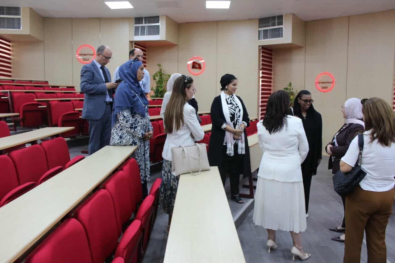وتولت السيدة خولة العبيدي، مديرة المدرسة استقبال الوفد الضيف برئاسة السيدة إسمهان محمود إبراهيم الرئيسة الأولى لمحكمة المحاسبات بدولة جيبوتي والوفد الممثل لمحكمة المحاسبات التونسية برئاسة السيدة فضيلة قرقوري الوكيل الأول للرئيس المحكمة.