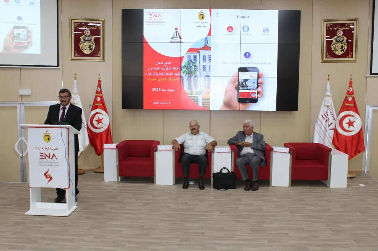 تم يوم الأربعاء 17 سبتمبر 2025 افتتاح الحلقة التكوينية في مجال التصرف الإداري الحديث بعنوان سنة 2025 والتي يتم تنظيمها بمعهد القيادة الإدارية طبقا لقرار السيدة رئيسة الحكومة المؤرخ في 21 أفريل 2025 وذلك لفائدة الإطارات الذين يشغلون خطة مدير إدارة مركزية والخطط المعادلة.